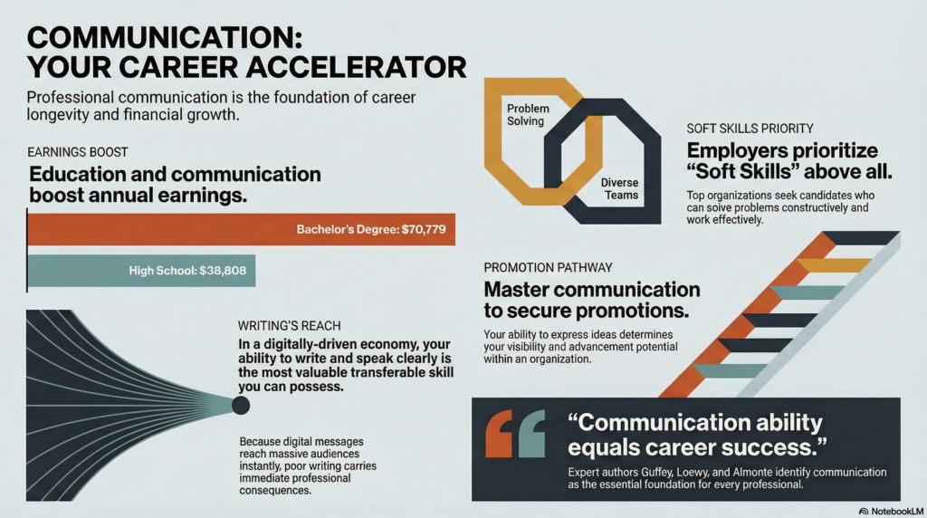 The textbook Essentials of Business Communication positions business communication as the foundation on which professional relationships are built. Unlike casual conversation, professional communication requires you to consider your purpose before you begin, your audience’s needs before you write, and the outcome you want before you speak. Organizations depend on communication not just to share information but to coordinate action, build trust, and drive results.